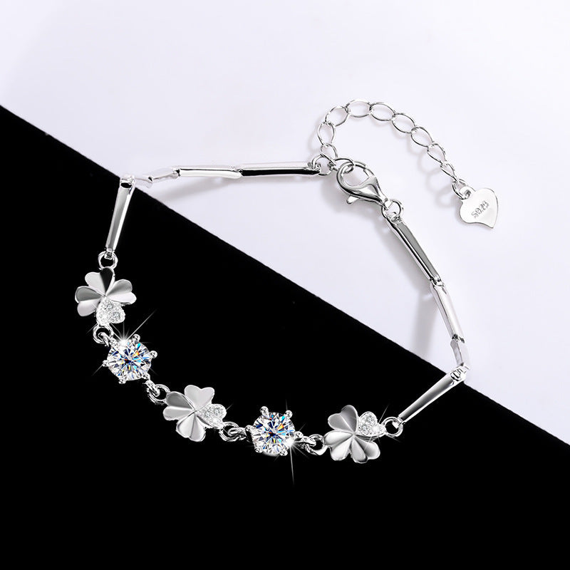 Bring charm and elegance to your wrist with this S925 Sterling Silver Moissanite Four-Leaf Clover...